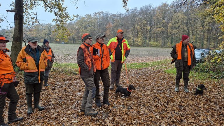 Am 16. August 2025 trafen sich Hundegespanne, Richter und Organisatoren zur Schussfestigkeits- (Sfk) und Spurlautprüfung (Sp) in einem schönen Revier in der Nähe von Lembeck. Aufgrund des zu erwartenden warmen Wetters trafen sich alle um 7h morgens.